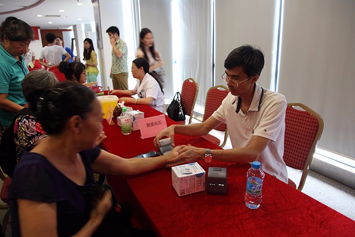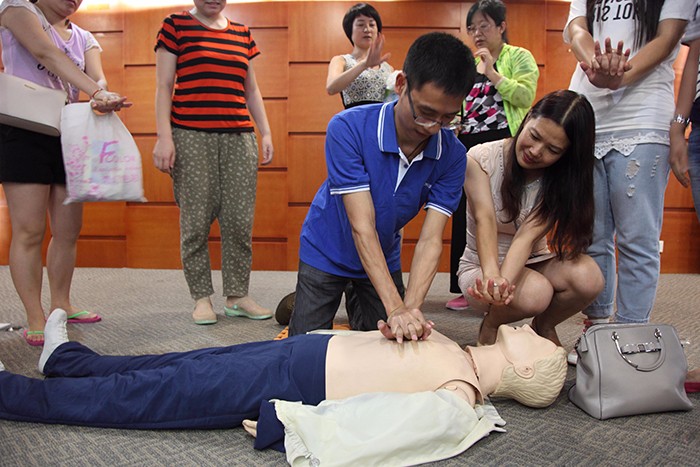 讲座中,福田区人民医院急救科张岸林副主任通过PPT图文并茂地向大家讲解了如何进行心脏按压、徒手心肺复苏等具体操作方法,在他的精彩讲解下,参加培人员认真听课,并对急救要点做了详细的笔记。讲解结束后,他在急救助手的辅助下,通过“模拟人”向大家展示了徒手心肺复苏技术操作演示,并邀请现场职工进行模拟演练,大家争先恐后参与模拟演练,整个讲座现场表现出热烈的学习氛围。讲座结束后,福田区人民医院妇科主任医师黄晓慧、急救科张岸林一起为leyu乐鱼在线官网的员工和社区居民进行了健康咨询、量血压、血糖测量等义诊活动。活动结束后新万泽医药公司员工与福田区医院的专家就妇科疾病预防进行了交流和探讨。