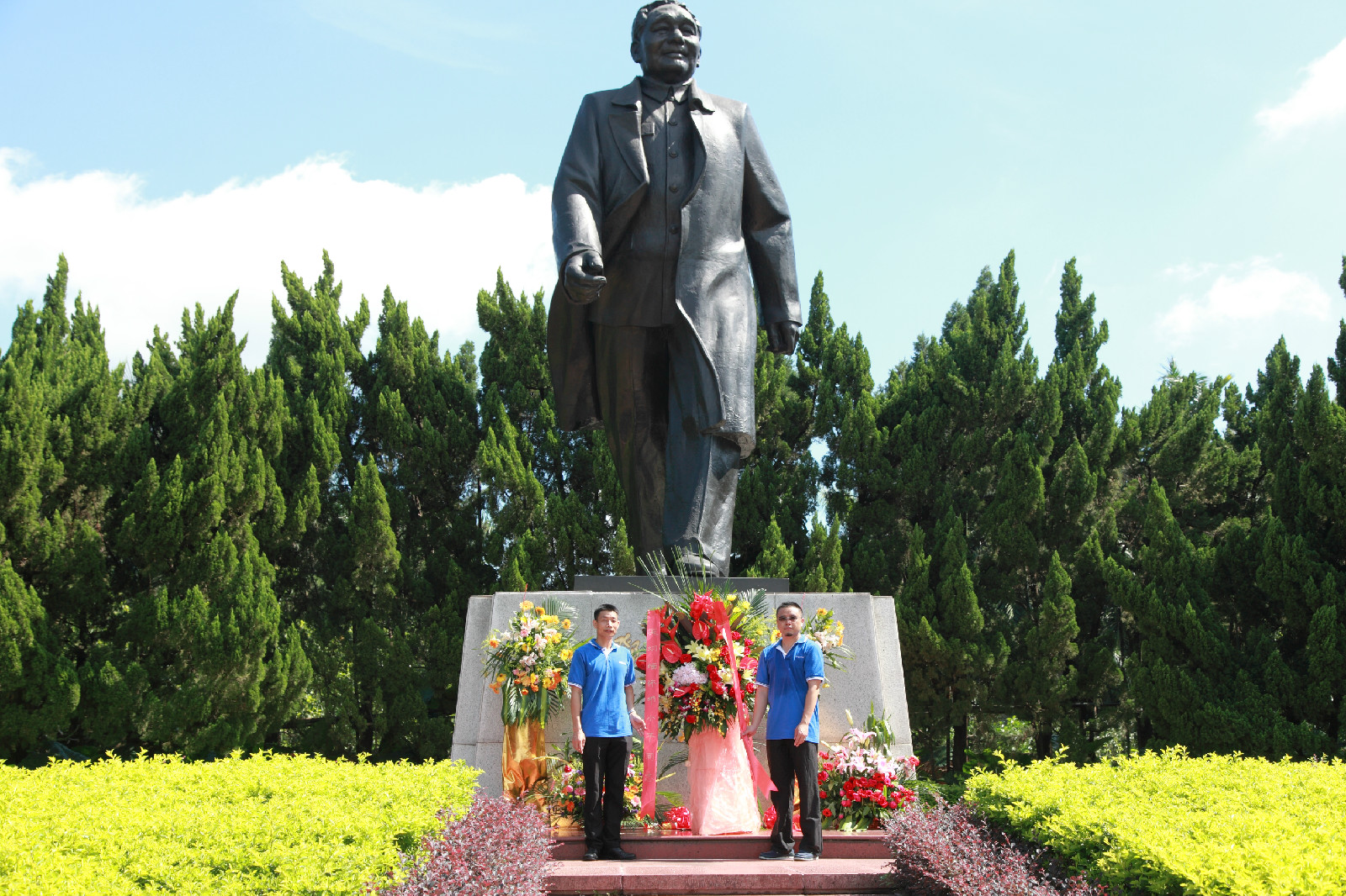 万泽物业党支部书记黄金国与万泽物业管理有限公司总经理杜隆锟代表全体党员向小平同志铜像敬献花篮