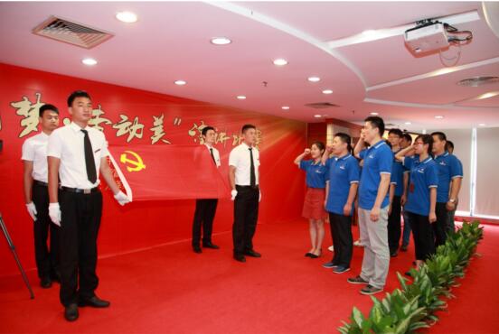 新党员面向党旗宣誓,党员代表重温入党誓词